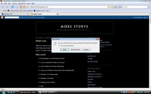 Over all I think windows live is a grate free online sweet that a student in college or even in high school for planing projects and things. Next week hope fully there will be a release beta for fire fox 3 and I can get my hands on that. Will until next weekend.![]()