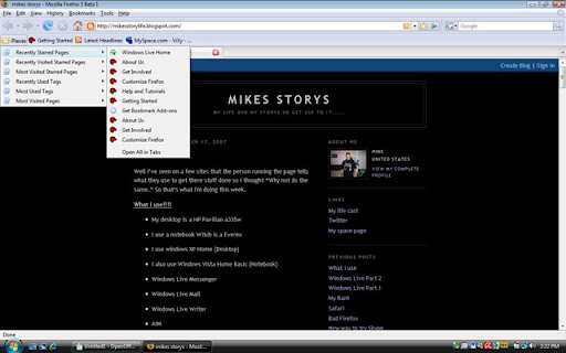 Well its been about 4 days sins I got Firefox 3 beta 1. I have to say its an improvement from Firefox 2. Firefox 2 really didn't have anything new that IE 7 didn't do. The one thing I liked the most was the places folder in the Firefox 3 its kinda like a easer to navigate history. I used that the most. Its more secure If you go to a page that has a invalid certificate it will say that its not vialed one. I really cant say to much right now cause its not done yet but when it is I'll have review. Go here to see the realest note for Firefox 3.